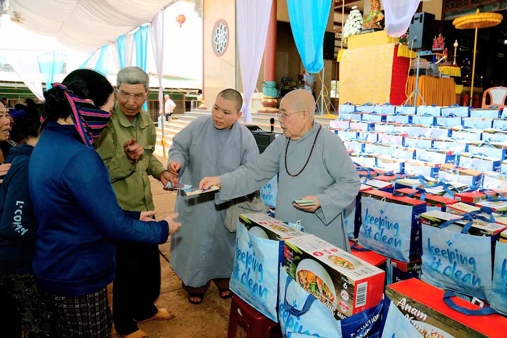 Không chỉ là ổn định sinh hoạt tâm linh tại địa phương, mà còn thể hiện tinh thần “hộ quốc an dân” của Phật giáo. Ngay sau nghi thức hành chính của lễ bổ nhiệm, chùa đã phối hợp cùng chính quyền địa phương, để trao tận tay những phần quà thiết thực đến bà con và đồng bào thiểu số đang gặp khó khăn trong việc mưu sinh.