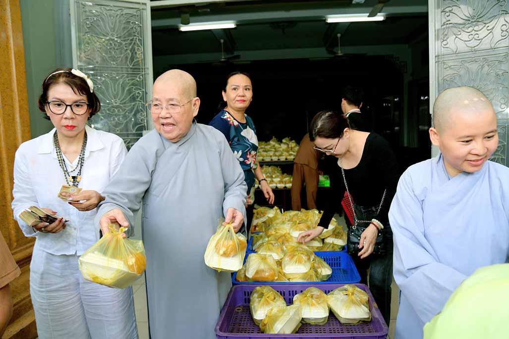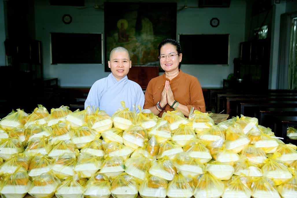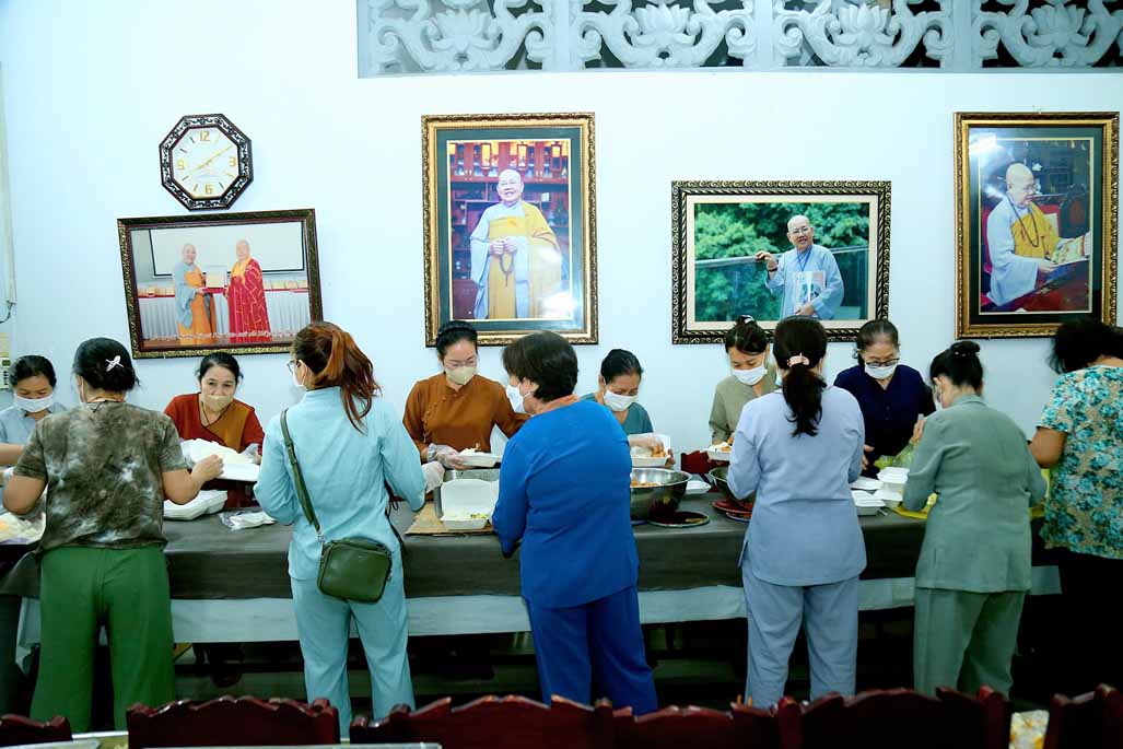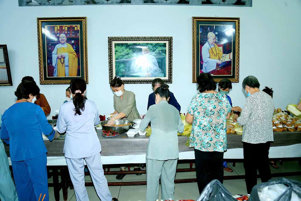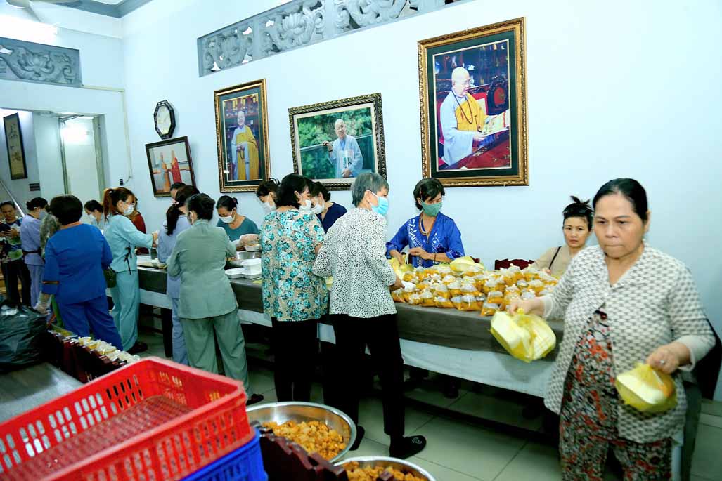 Ngay từ sáng sớm, Ni trưởng cùng chư Tôn đức Ni, quý Phật tử và các tình nguyện viên, đã vân tập đông đủ, chung tay chuẩn bị từng phần cơm chay. Từng món ăn được chăm chút tỉ mỉ, vừa đảm bảo dinh dưỡng, vừa giữ trọn sự thanh khiết.