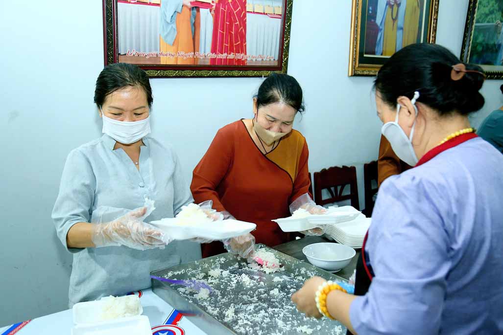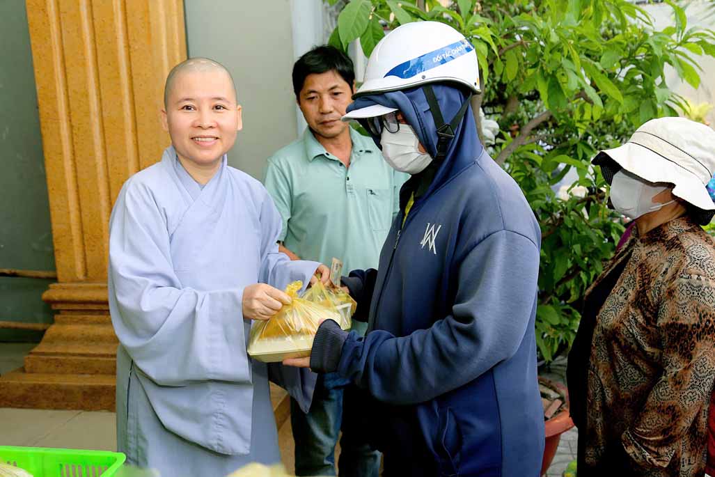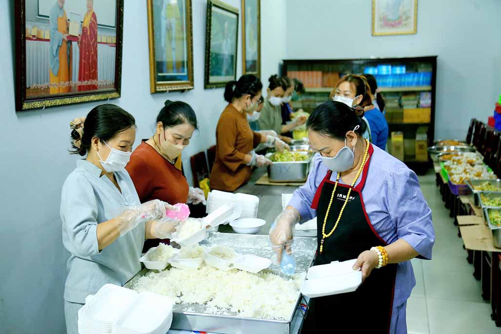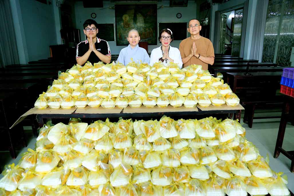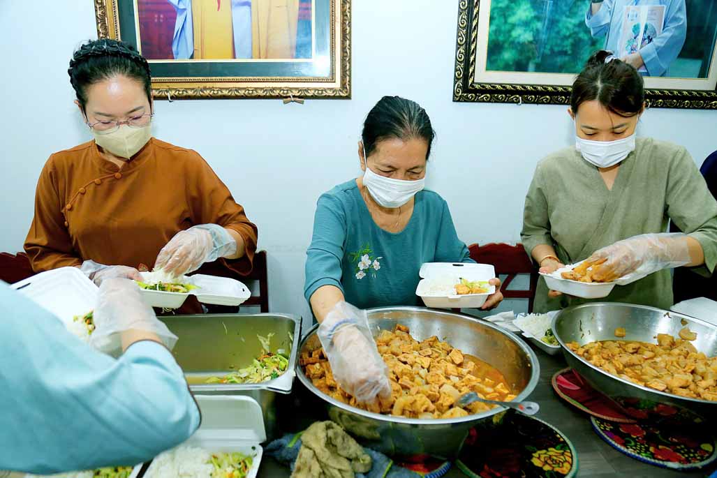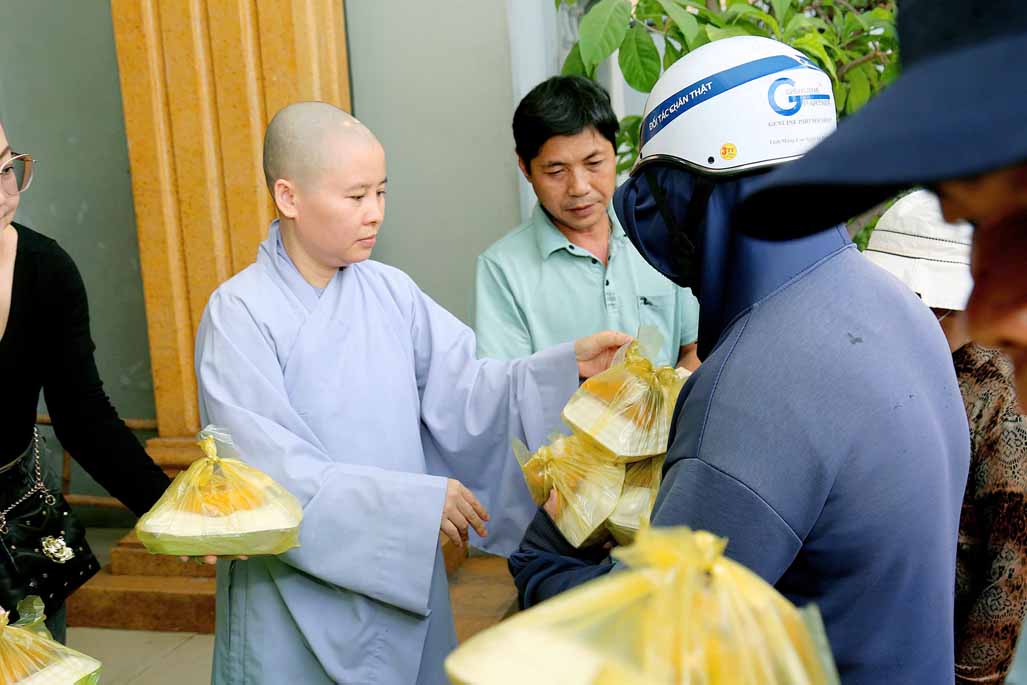 Trong không khí ấm áp nghĩa tình, ai nấy đều hoan hỷ, tất bật nhưng đầy niềm vui phụng sự. Những nụ cười hiền hòa, những bàn tay thoăn thoắt, đã góp phần tạo nên những phần cơm nghĩa tình, kịp trao tận tay bà con vào lúc 10h00 sáng.