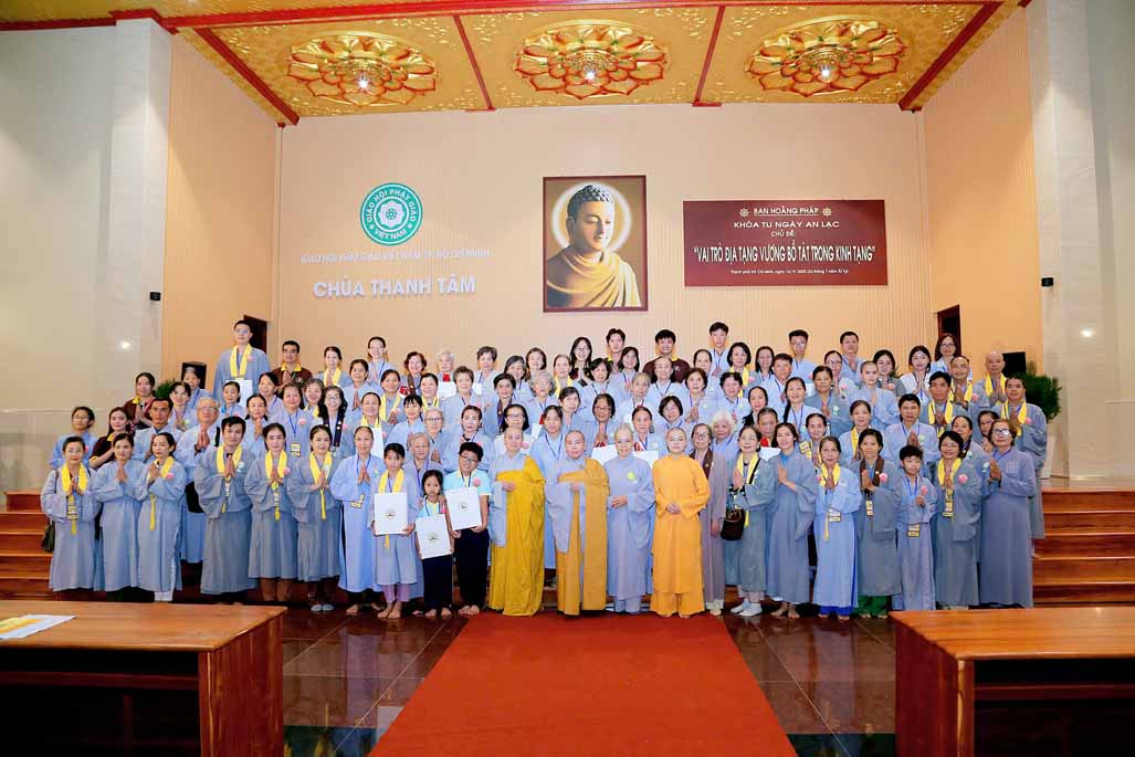 Ngày 14/ 09/ 2025 (23 tháng 7 năm Ất Tỵ). Ban Hoằng Pháp GHPGVN TP. HCM tiếp tục khóa tu “Ngày An Lạc” lần thứ 7 tại chùa Thanh Tâm, xã Bình Lợi, TP. HCM, với chủ đề lần này là: “Vai trò Địa Tạng Vương Bồ Tát trong kinh tạng”. Khóa tu hằng tháng tại chùa Thanh Tâm lần này trùng dịp Đại lễ Vu lan – Báo hiếu. Ban Hoằng Pháp GHPGVN TP. HCM có những chủ đề phù hợp theo ngày tháng và những ngày ý nghĩa liên quan trong Phật giáo, từ đó chương trình luôn đổi mới và linh hoạt.